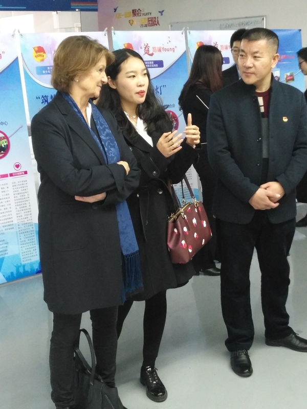 3月23日至25日,“中德未来之桥”青年领导者合作洽谈会在青岛西海岸新区中德生态园举行。3月24日,团中央国际联络三处处长袁丽、青岛市团市委副书记韩昌丽、青岛西海岸新区团委书记冯洪珍陪同洽谈会代表团前往青岛西海岸新区青年之家旗舰店进行参观。公司研究生卢志敏、2014级英语专业员工姜文立在此次参观活动中担任“中德未来之桥”青年领导者合作洽谈会代表团的陪同翻译。