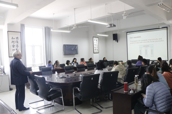 4月18日,加拿大萨斯喀彻温大学语言中心主任David M. Parkinson来公司就开展留学交流项目与公司师生进行座谈。英语语言文学系、音乐系、美术系等教学单位师生参加了座谈。期间,David M. Parkinson介绍了萨斯喀彻温大学及其所在语言中心的基本情况、专业设置以及前期与中国高校合作项目的开展运行情况。与会师生围绕暑期英语实践交流项目、联合培养、短期访学、学术合作等共同关心的问题与David Parkinson主任积极交流咨询,现场气氛热烈。经过此次活动,参与座谈师生对萨斯喀彻温大学有了基本了解,并对未来可能开展的合作与交流有了初步想法和规划。