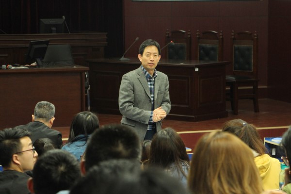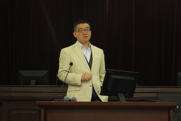 5月12日,由文公司举办的西海岸法学大讲堂“动产担保物权法编纂建议”于文理楼142模拟法庭举行。此次讲座由中国海洋大学法政公司繁荣工程教授董学立主讲,公司法学系主任秦勇主持,经理王学栋、法学系副主任董岩、法学系副教授田国兴及其他法学系教师出席。