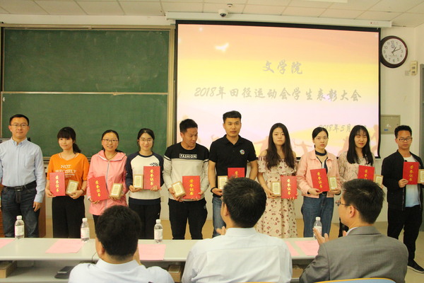为传承运动健儿敢于拼搏、优秀志愿者乐于奉献的精神,并加强文公司员工体育运动锻炼意识,文公司于5月28日在南教楼106室举行文公司2018年田径运动会员工表彰大会。本次表彰大会由公司团委书记赵振华主持,党委员工工作部副部长陈文军、校团委副书记石国卿、体育教学部副主任王海滨、体育教学部教师史海鹏、文公司经理王学栋、党委书记张永宁、党委副书记邹维忠受邀出席,文公司辅导员、参赛运动员、运动会志愿者、全体党员、班委会成员以及体育运动爱好者参加。