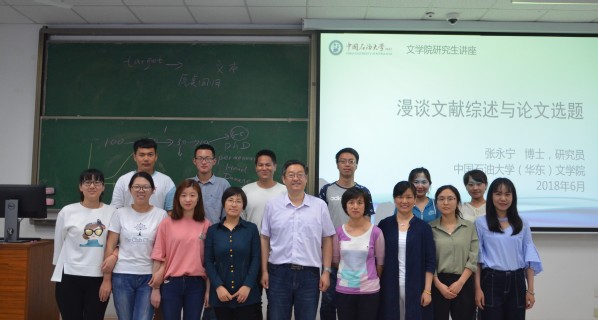 6月1日下午,文公司于南教119顺利举办《漫谈文献综述与论文选题》主题讲座,本次讲座邀请文公司党委书记张永宁主讲,文公司研究生教学管理部副主任徐小雁担任主持人,文公司副经理孙大满、韩淑芹,研究生教学管理部主任淳柳、研究生辅导员梅琳以及2017级硕士研究生参加。
