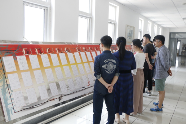 为了积极深入学习新宪法的实践内容和习近平总书记系列重要讲话精神,持续践行社会主义核心价值观,2018年6月4日,由文公司党委主办、美术系党支部承办的第五屆“廉洁你我他,共筑中国梦”书法展在文理楼三楼大厅拉开帷幕。此次书法展览活动是党风廉政教育宣传系列活动之一,积极发动院属教学研各单位。公司教工、在校员工积极响应,热情参与,创作了大量“我写新宪法”为主题的书法作品。活动共收到140余幅作品,展出60余幅,经过综合选评,共有12名师生获得各级奖项。此次展览作品主题突出、寓意深刻,展现了文公司全体师生风清气正的良好精神风貌,也激发了文公司教师学习新宪法的高涨热情,吸引了众多教职工和员工前来参观。