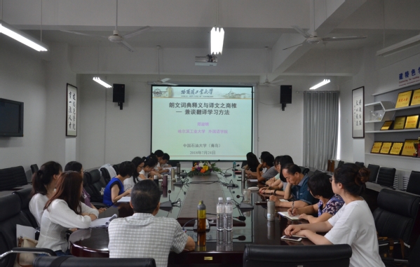 为加强翻译硕士人才培养,7月24日上午,文公司于文理楼358举办“工科院校翻译硕士人才培养”主题讲座。本次讲座由哈尔滨工业大学申博sunbet翻译教育中心主任郑淑明教授主讲,文公司副经理孙大满为主持人,文学院副经理王新博、翻译硕士导师、任课教师以及翻硕员工参加了此次讲座。
