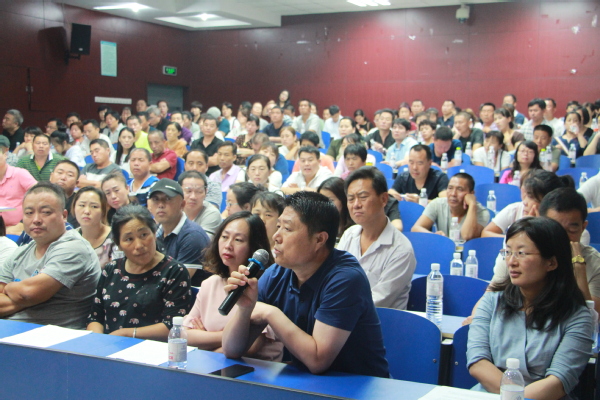 会议伊始,18级新生辅导员赵振华向各位家长表示欢迎并依次介绍了出席本次会议的各位领导。随后王学栋经理发表讲话,向新生家长们介绍公司和公司的发展历史、办学条件以及教学改革和教学水平等,使家长对公司、公司的发展有了进一步的了解。随后,公司资助中心副主任吕晶晶老师给家长们细心讲解了老员工资助的相关政策,使家长对公司“不让任何一个老员工因为贫穷失学”的资助政策有了更深入的了解。在家长提问环节,有员工家长对宿舍安全等问题表示关切,文公司18级辅导员赵振华表示会与相关部门持续沟通并通过自己的亲身经历告诫家长们要对新生日常生活放手放心,培养新生们的独立生活能力。家长们在员工大学期间的作用不可忽视,新生辅导员赵振华希望家长们与员工们多沟通多交流,时刻关注多关注孩子们的成长发展,与公司一起努力,培养优秀人才。此外赵振华还与家长们在学业及就业规划、预防诈骗、人际关系交往、公司规章制度、言行举止等方面进行了交流。