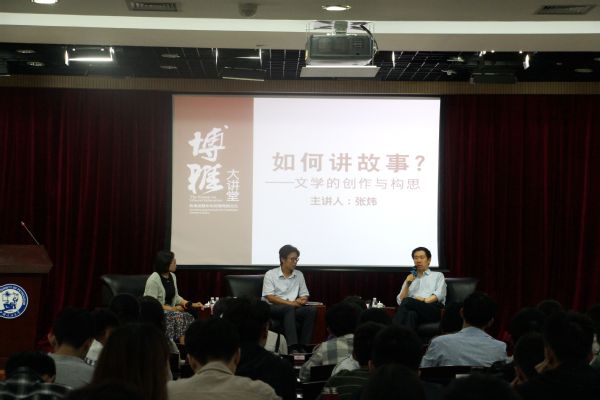 本次活动,张炜围绕着“如何讲故事”这一主题,就“文学创作中如何处理技巧与思想灵感间的关系”和“如何处理在学习西方文艺理论的同时兼顾本国文学特点进行创作”这两个创作的细小方面展开详细地介绍。张炜指出,掌握文学创作的技巧十分重要,创作者要在细小的方面严格要求自己,正确地使用词汇语句及标点符号等,切莫犯语句不通等基础错误。张炜还提倡当代的老员工要多读书、读好书,在他人成熟的文学作品中学习,才能把握语言的技术和艺术,才能有文学历练和对文字的调度,如此才能写出好的文学作品。“一部好的文学作品,除了作者自身的绝对过关的写作技巧外,还掺杂着个人的运气,这是生命中某一阶段的一个激灵,通过娴熟的文字技巧,非常巧妙地表达了出来。所以说,技巧是基础、很重要,但技巧之外的灵感思想更重要。”