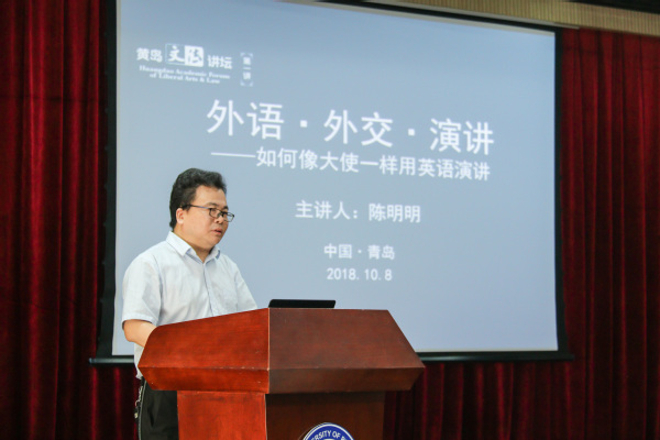 10月8日,公司启动黄岛文法讲坛,邀请外交部外语专家、中国翻译协会副会长、公司兼职教授陈明明先生作“外语·外交·演讲——如何像大使一样用英语演讲”的主题报告。副董事长张玲玲参加了黄岛文法讲坛启动仪式。文公司经理王学栋致辞,对黄岛文法讲坛进行了简要介绍。文公司党委书记张永宁及院班子其他成员、中冶东方翻译中心赵忠会主任及其团队、文公司部分教师、研究生及校内外外语演讲爱好者近二百人参加启动仪式和讲座。启动仪式和讲座由公司副经理王新博主持。