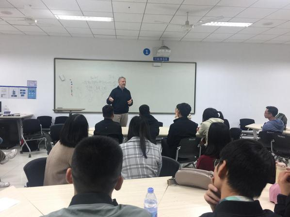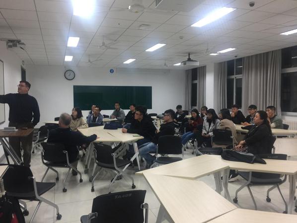 为了加强公司双一流建设,进一步推进研究生教育的国际化,10月25日晚,公司研究生英语教学改革之语言实践活动英语角在综合实验楼A406如期举行,英语爱好者积极参加并进行了热烈的讨论。外教Russ和Scott在现场做了激情演讲和美国文化介绍,文公司郭月琴教授也在现场积极调动研究生同学开口说英语,激发了同学们练习英语口语的热情,现场气氛热烈。有好几位同学羞涩地说这还是第一次和外国人面对面讲英语,很紧张,后来就好多了。同学纷纷表示喜欢这样的英语活动和浓浓的英语学习氛围,口语很重要,希望以后公司多搞些类似的活动,更希望免修的同学也到现场来,带动一下其他基础薄弱的同学。