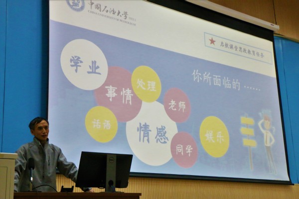 会议伊始,辅导员赵振华指出本次活动的宗旨,并对主讲人进行介绍。本次课程分为两个部分。首先由储运与建筑工程公司辅导员周辉就安全问题进行题为《凡事,看三步——新生安全教育》的课程宣讲。周辉从学业、话语、事件、情感、处理、老师、同学以及娱乐八个方面进行安全教育讲授,从身边案例出发,由小及大,提醒同学们在各个方面需有包容之心、全面看待问题,积极寻求安全隐患的解决办法。