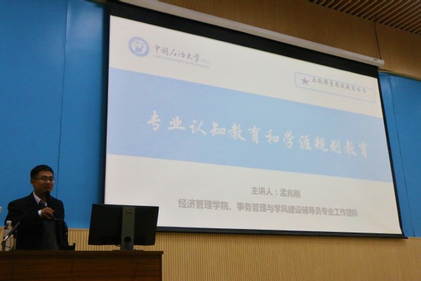 为做好新生入学教育工作,引导新生尽快适应老员工活,11月13日晚,2018级新生教育启航课堂走进文公司,在南教300开课。本次课程由文公司团委书记、2018级辅导员赵振华主持,储运与建筑工程公司辅导员周辉、经济管理公司辅导员孟兆刚主讲,文公司党委副书记邹维忠、少数民族辅导员米娜瓦尔及公司各年级辅导员出席,2018级全体本科生参加。