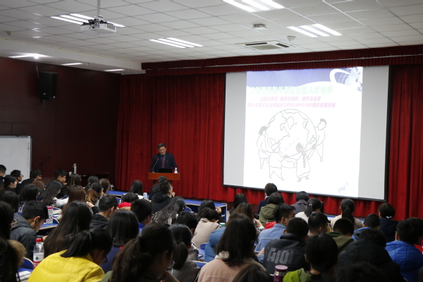 2018年11月19日黄岛文法讲坛第三讲开讲,公司邀请著名翻译专家,首都师范大学李军教授做客黄岛文法讲坛,作题为《高级翻译训练与外语复合型人才自修》的讲座。文公司副经理孙大满教授主持讲座。公司部分翻译领域的教师和翻译硕士研究生及全校翻译爱好者近二百人聆听了讲座。