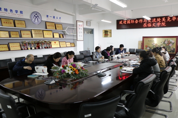 近日,公司国际合作与交流处吴克华副处长一行来文公司指导国际交流与合作工作。参加此次会议的有国际合作与交流处吴克华副处长、杨一帆,文公司副经理、国际事务办公室主任孙大满,国际事务办公室副主任朱珊、姜训禄,研究生教学部主任郭月琴以及各系负责国际交流事务的老师。