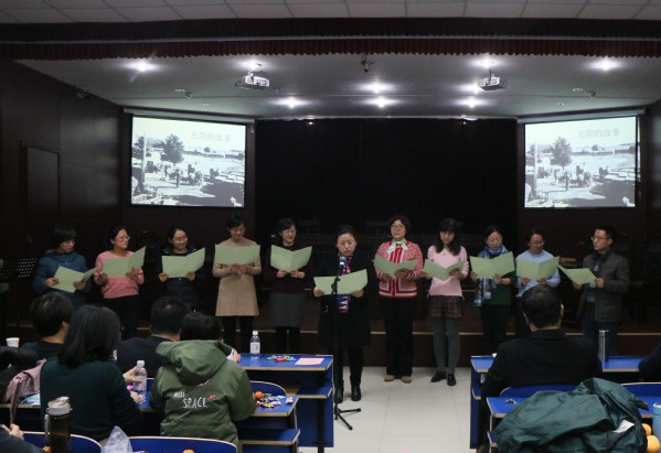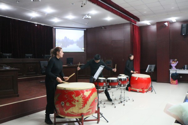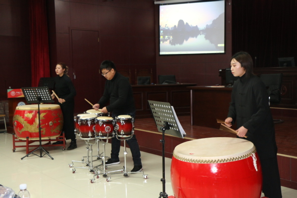 华灯初上,红幅张彩,音乐系李汉老师表演的打击乐重奏《龙腾虎跃》拉开了联欢会的序幕。昂扬激情的鼓点,喜庆欢快的节奏瞬间将现场的气氛点燃。应用外语系朗诵的《光阴的故事》和大学英语二系的话剧《我们的日子》体现了公司教职工赤子诚心、志求高远、把握今朝,追求美好未来的精神风貌;英语语言文学系合唱《明天会更好》经典的歌词带我们回到纯真的年代;俄语语言文学系表演的《We will rock you》和音乐系教师表演的歌舞《在希望的田野上》将联欢会推向一个小高潮;汉语言文学系退休教师阎秀平京剧独唱《梨花颂》选段回味悠长,感人肺腑;大学英语一系的诗朗诵《春天里的中国》歌颂了改革开放四十年祖国的沧桑巨变;院机关的三句半以诙谐幽默的形式向大家展示了院机关教辅工作的日常点滴;美术系付寒娇老师与外教老师的孩子们献上了一曲《宠爱》,举手投足间挥洒着属于孩子们的活泼可爱和率真童心。最后法学系合唱的《我爱你中国》唱响了公司美好的明天和辉煌的未来。联欢会在一片喜气祥和的氛围中圆满落幕。