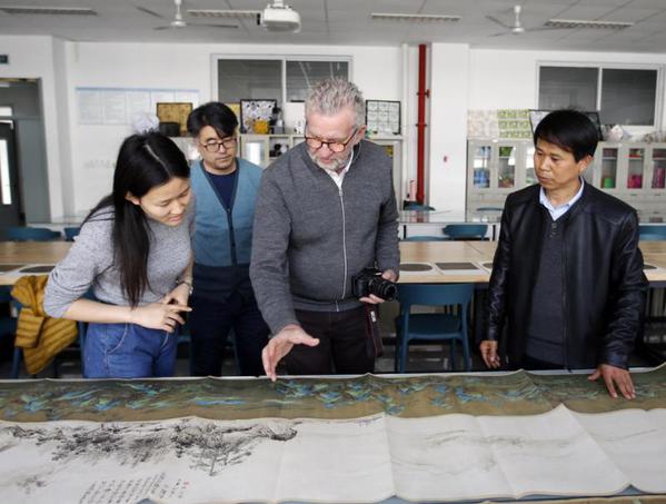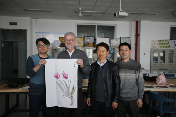 3月26日,山东青岛申博sunbet,丹麦工程院院士彼得•维•尼尔森(Peter V. Nielsen)在进行学术交流之余,来到该校美术系,和王成宝、孙峰等美术系教师进行中国传统美术艺术交流,领略历史悠久的中国艺术和博大精深的中国文化。