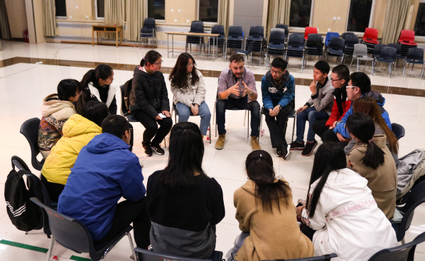 为锻炼员工英语听说能力,熟悉旅游中常用的英语表达语句,4月13日晚,由校团委、教务处、文公司主办,英语学习及跨文化交流协会承办的英语角升级重启仪式暨全新英语角第一期活动在唐岛湾三楼多功能厅举办。校团委书记张展,文公司党委书记张永宁,文公司副经理韩淑芹,英语语言文学系党支部书记潘荔霞,文公司团委副书记付晓,英协指导教师韦超,文公司外教Constantin和Katie及150余名员工参加此次活动。