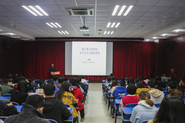 4月12日,由文公司主办的博雅大讲堂系列讲座第17期——略论秦汉时期的五行文化与谶纬学说于文理楼142室举行。本次讲座由汉语言文学系教师、历史学博士伊强主讲,文公司党委副书记邹维忠出席,180余名员工参加。