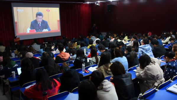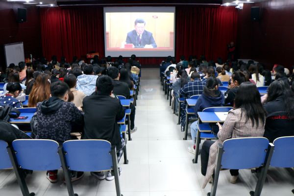 4月30日上午10时30分,纪念五四运动100周年大会在人民大会堂举行,中共中央总书记、国家主席、中央军委主席习近平将出席大会并发表重要讲话。文公司师生齐聚文理楼142,或在教室、宿舍通过手机、电脑等多种方式收听收看大会盛况,认真聆听、深刻领会和学习习近平总书记的重要讲话,并将大会精神贯彻到日常的学习、工作中去,踏实工作、勤奋努力,努力推动公司建设。
