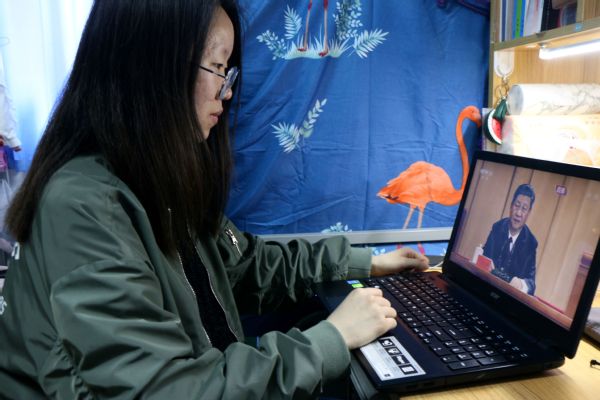十大团员标兵获得者2016级本科生于美霞通过手机观看了直播,并表示时代赋予我们伟大的使命,也给予我们前所未有的平台和机遇,我们应好好把握。正如习近平总书记讲的,“青年要珍惜这个时代、担负时代使命,在担当中历练,在尽责中成长,努力成为德智体美劳全面发展的社会主义建设者和接班人!”作为团员标兵,我更应以身作则,发扬青年人的“精气神儿”,牢记伟大复兴中国梦的使命,担当奉献,展现青年风采,不负时代期望。
