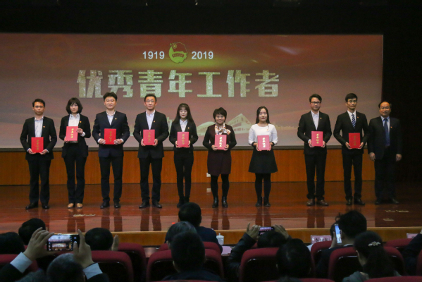 4月30日,公司纪念五四运动100周年暨年度五四表彰大会在逸夫礼堂举行,公司成绩优异、硕果累累:文公司团委荣获“红旗团委”称号,文公司桥贯中西志愿服务队荣获获“青春建功新时代先进集体”称号,俄语专业本科2017级1班团支部、法学专业本科2017级1班团支部荣获“红旗团支部”称号,于美霞荣获“十佳团员标兵”称号,金璐荣获“思美之星”称号,冷凌荣获“优秀社团指导教师”称号,赵延升荣获“优秀青年工作者”称号,113名文公司团员获得优秀团员称号,76名获得优秀团干称号。