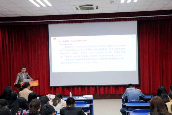 赵振华强调要落实好“三会两制一课”,办好主题团日活动。他指出五月份要紧紧围绕习近平总书记在纪念五四运动100周年大会上讲话精神开展务实有效、形式多样的宣传教育活动。为激励各团支部积极创新活动形式,切实增强活动的针对性和实效性,赵振华说道,“不能照本宣科地读文件,不能空泛地学习,团支部活动要围绕青年团员需求,要让青年团员有收获感,要关心青年员工的学习、生活、就业。”随后,赵振华就职业竞争力与职业精神进行全面分析,引导青年团员形成正确的职业观,培养职业能力,不断提升自身的就业竞争力。