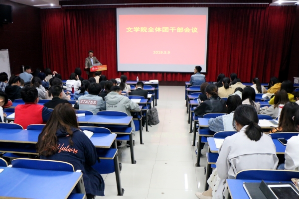 文公司团委于5月9日在文理楼142召开全体团干部大会。团委书记赵振华主持,文公司团委委员、团总支部书记、团支书及团建中心兼职团干部参加会议。