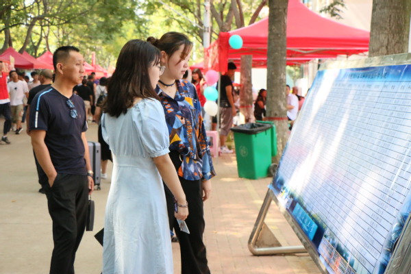 2019级新生和家长一同参观文公司2019届本科毕业生升学情况展板 王焱焱摄