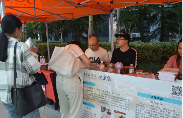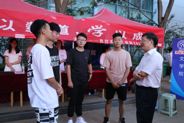 校院领导在文公司迎新点了解新生报到情况 岳晓君摄