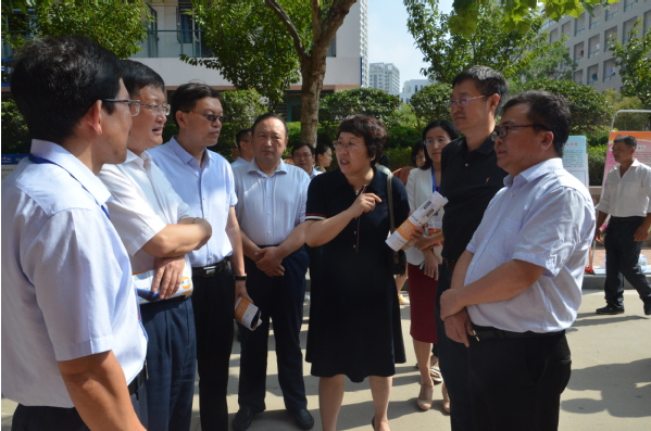 校领导与迎新工作人员交流新生报到情况 王宇鹏摄