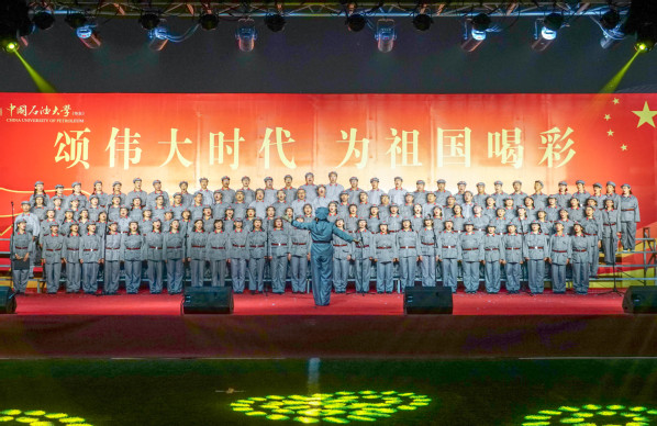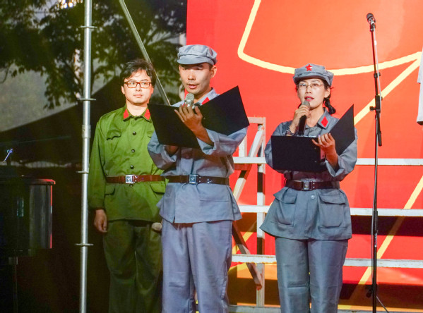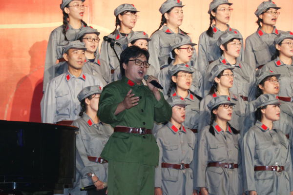 9月24日晚,文公司教职工合唱队在校体育场引吭高歌,演绎歌曲《七律.长征》。参加演出的“红军战士”,身着戎装,军姿飒爽,用歌声颂伟大时代,为祖国喝彩。
