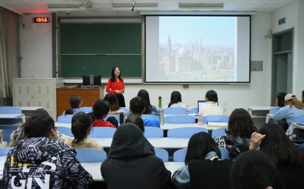 下篇“不能错过的阿拉伯色彩”中,毛潇琳通过丰富的图片和视频向员工们介绍了古老华美的千塔之城——开罗、雄伟壮丽的爱资哈尔清真寺、令人目不暇接的阿拉伯大袍舞以及充满民族特色的哈·利利市场和水烟,“埃及并不是像你们想象中的那样,只有象征着古老的黄色,它也拥有着丰富的色彩,这与阿拉伯文化的包罗万千密不可分。”讲座最后,她还介绍了阿拉伯礼仪、衣着要求等风俗习惯。汉语言文学1902班董方圆说道:“毛老师幽默风趣的讲解,不仅让我开阔了视野、了解到了埃及的美丽风光和独特的风土人情,还使我产生想亲自体验埃及生活的想法,我也深深感受到了阿拉伯国家与我国文化之间的巨大差异。我们应该尊重不同地区的文化。”