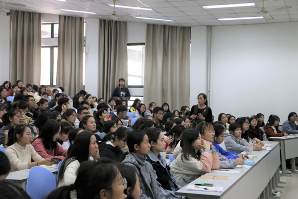 课程一开始,杜文倩向学员们详细介绍了团旗、团徽和团歌,并强调团旗团徽团歌是中国共青团的重要标志,象征着中国青年一代紧密团结在中国共产党周围,在党的思想光辉照耀下,朝着党所指引的方向奋勇前进。紧接着,她向学员们介绍了三会两制一课的内容,她强调落实“三会两制一课”是推进团要管团,从严治团的重要载体,要坚决防止表面化、形式化、娱乐化、庸俗化,并通过视频加深了学员们对三会两制一课的理解。之后,杜文倩介绍了与学员们密切相关的四项基础团务工作以及团日活动,重点提出了“如何办一个有趣又有意义的团日活动?”这一问题并分享了自己关于这一问题的调研成果,她说:“团日活动有宣传思想的作用,所以做活动的时候就要突出团味。但同时也要抓住热点,紧跟潮流,以新的形式开展活动,使团日活动重唤生机。”随后,她向同学们介绍了共青团的新闻宣传工作,并强调在新时代,共青团的宣传工作要紧扣时代主旋律,传播好党团知识,凝聚团员青年合力,推动共青团更好发展。课程的最后,她通过问答的形式带领学员们回顾了本次课程的主要内容并总结希望学员们牢记今天所讲的内容,在以后的学习生活中,以更高的标准要求自己。