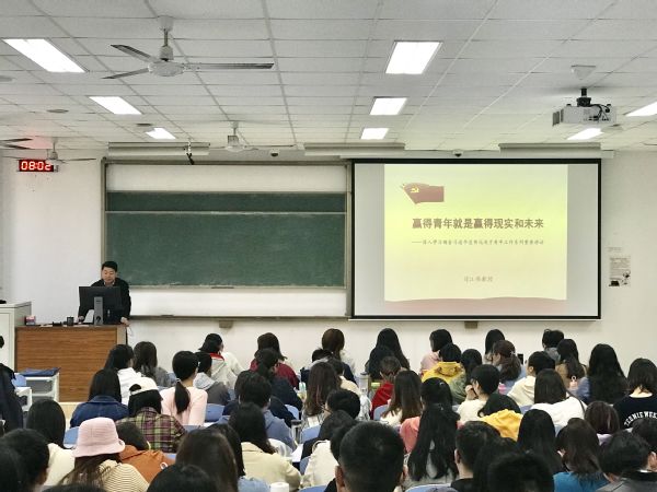 司江伟首先以习近平总书记对新时代青年提出六大要求开始了本次培训,即树立远大理想、热爱伟大祖国等。他提到了2018年五四前夕习近平总书记在北大的讲话,总结了五点对青年人的要求:一是要忠于祖国,忠于人民;二是要立鸿鹄志,做奋斗者;三是要求真学问、练真本领;四是要知行合一、做实干家;五则是要承担起社会主义建设者和接班人的使命和责任。司江伟与学员们一同梳理了从2013年到2018年习近平总书记在五四青年节前后的相关活动和重要讲话,通过梳理,司江伟总结出了五点重要讲话精神,即以战略眼光重视青年、以远大理想感召青年、以道德修养引领青年、以扎实学识滋养青年、以良好环境培育青年。司江伟以中国在美职工的实例引出了以战略眼光重视青年的原因,除把握国际人才竞争大势以外,重视青年也是党在对历史经验以及自身奋斗历程的总结过程中得出的成功经验。“要把每一个青年都看成一块玉,充分信任青年,热情关心青年。”司江伟说道。在谈到以道德修养引领青年时,司江伟从前提条件、显著特点、价值属性、逻辑关系、社会地位五个方面来解释对人才的定义,并提出了“德才兼备,以德为先”的人才标准。此外,他还引用千古忠烈颜真卿的事迹向学员们强调了道德修养对人的重要意义,鼓励在座学员们加强思想道德修养,培养正确的价值观。在讲解完扎实学识和良好环境对青年成才的重要作用后,司江伟以“谁赢得了青年,谁就赢得了现实和未来”作结,这是习近平总书记关于青年和青年工作的系列重要讲话精神,司江伟以此来证明青年和青年工作的重要性,并激励学员们全面发展,做有益于国家和社会发展的优秀青年。