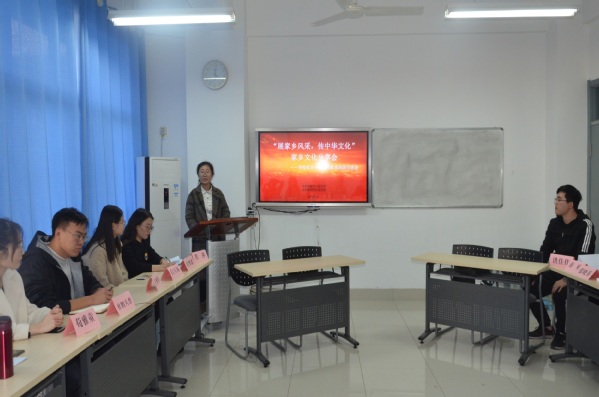 本次活动围绕“展家乡风采,增强文化自信”主题展开,共分为“弘扬中华优秀传统文化,增强文化自信”“展现家乡风采,体悟方言文化”2个环节。第一环节,全体成员共同观看了关于习近平总书记发表重要文章《坚定文化自信,建设社会主义文化强国》的视频。焦萍针对视频中谈到的“文化自信”问题,谈到文明特别是思想文化是一个国家、一个民族的灵魂。我们要保护弘扬中华传统文化,树立文化自信。第二个环节分为家乡风采展示和方言文化展示两个部分。首先,由洪佳伟、许梦瑶、白玉环、王梦科、杜鹤天普、荀雅童6位同学分别对自己的家乡荣成市、平度市、章丘区、滨州市、长春市、洛阳市的特色产品、风景名胜、红色文化等进行了介绍,并表达了他们对于家乡文化的热爱。滕玉芹认真听了同学们对于自己家乡文化的介绍后,针对自己的家乡的文化进行简单的介绍,她谈到,“万物有所生,而独知守其根”中华文明延绵至今,正是因为这种根的意识。我们要树立根的意识,记得住乡愁,保护弘扬传统文化。