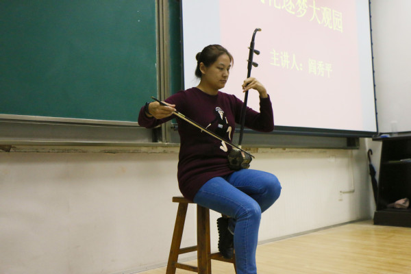 仪式结束后,翰林国学大讲堂由孙玉的二胡独奏《枉凝眉》拉开帷幕,一曲婉转深沉的曲子将在场师生带进了红楼世界。“春梦随云散,飞花逐水流。寄言众儿女,何必觅闲愁。”阎秀平以一首短诗引入主题,为大家做了题为《飞花逐梦大观园》的讲座。阎秀平通过丰富的图片和精彩的影视片段等多种形式为大家详细介绍了作者背景、大观园的兴衰、不同人物的住处与性格的关系分析等内容,让红学爱好者们对《红楼梦》有了更加深入全面的了解。在与员工互动环节中,阎秀平提出几个原创诗谜和与《红楼梦》相关的问题,在场员工兴趣高涨、积极回答,现场气氛热烈非凡。“真事隐去,假语存言。国学的门类宽泛、内容丰富,希望同学们能在课余时间多阅读传统经典,提高自身文学修养,提升民族文化自豪感。” 阎秀平在讲座总结时说道。