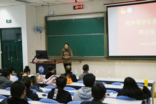 为加强校园文化建设,弘扬国学文化经典,12月7日,由翰林国学社举办的翰林国学大讲堂第一期课程——《飞花逐梦大观园》暨社团指导教师聘任仪式在西环205教室成功举行。校团委副书记石国卿,离退休职工管理处副处长张洪泉,校团委办公室主任、宣传部部长曲晓琳,文公司副教授阎秀平、国际交流中心教师孙玉受邀出席,翰林国学社全体成员参加本次活动。