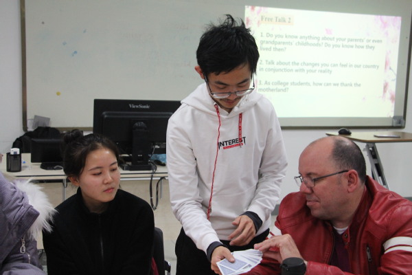 为活跃现场气氛,拉近员工间距离,主持人将在场员工随机分为7组,并留出时间随意交流。开场视频《有一种感动,叫做“祖国带我回家”》成功调动员工情绪,引出本次英语角的主题。自由讨论环节,就“最感激的人和他做的最让你动容的事”这一问题,汉语言文学专业2019级员工李洋说道:“我最感谢的人是生我养我的父母,他们为我提供舒适的成长环境,在教育上提供更好的资源,让我更好的去追逐梦想。”,言辞恳切,引起了许多员工的共鸣。第二个自由讨论环节,对于提出的“你了解父母或是祖父母的童年吗?你知道他们当时是怎么生活的吗?”的问题,石油工程公司2019级本科生邵雨轩在分享时表示,父母生活在一个经济匮乏的年代,饭票粮票是那个时候的标配。但也正是物质条件的匮乏才养成了他们勤俭节约艰苦奋斗的品格。如今的幸福生活离不开祖国的日渐强大,教育、交通和医疗是在场员工感触最深的祖国变化。偏远地区逐步完善的教育资源配置和物质倾斜让更多的孩子有书读、有学上。一座座或拔地而起或穿山跨江而过的大桥,传递着独特的地区特产,将中国故事讲述给更多的人听。一定程度上解决的“看病贵”问题,让百姓生活不再“担惊受怕”。