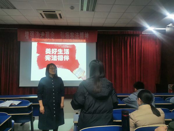 依托法学系教团队源,公司着力发挥第一课堂主渠道作用,加强体验式教学。法学系副教授冷凌开展了研讨型教学;副教授谌爱华开展了“学宪法,讲宪法”演讲小课堂;法学系副主任董岩组织员工开展法治情景剧表演,生动、接地气地将宪法知识传递给员工,提升宪法教育的针对性和实效性。依托第二课堂活动,公司组织开展宪法晨读活动、驻青高校国家宪法日主题征文比赛、专题讲座、线下知识竞赛等多种形式的活动,积极推动宪法教育有机融入员工日常生活,着力营造尊崇宪法、学习宪法的校园法治文化氛围。各团支部也积极开展了不同形式的宪法学习教育活动,汉语言文学1902团支部开展 “宪法初认识”宪法学习活动,文公司研1901团支部开展“网络惹的祸”宪法情景剧表演。各支部丰富的主题活动将法治信仰融入家国情怀,激励员工厚植法治精神和爱国主义情怀。