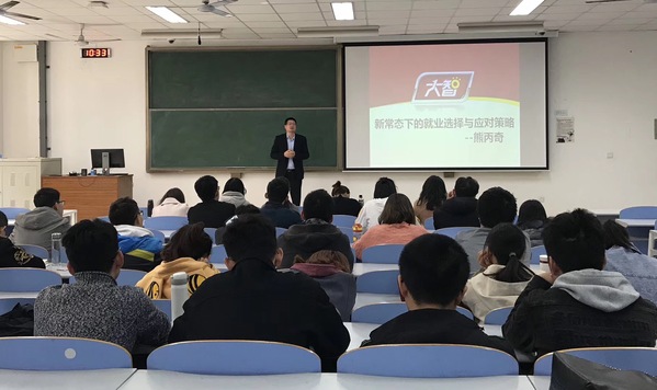公司联合大智教育集团邀请21世纪教育研究院副经理熊丙奇教授来公司为学子做《新常态下的就业选择与应对策略》讲座,大智教育集团青岛区域人资招聘负责人刘杰、辅导员赵延升和公司百余名员工参加。熊丙奇针对目前教育制度改革,社会转型的大背景,向员工解读了新常态下就业市场对人才的要求和就业应对策略。讲座结束后,大智教育集团青岛区域人资招聘负责人刘杰进行专场宣讲招聘,为文公司员工提供就业机会。