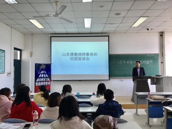 公司邀请德衡律师事务所针对法学系进行专场招聘。德衡律师事务所五名不同诉讼方向的骨干律师参加,分别介绍事务所概况,各自方向的特点以及各自的择业成长之路。他们用自己的亲身经历,以身说教,在展示律师风光的同时,告诉员工们正确择业与规划未来的重要性。参与宣讲会的员工们聚精会神,回应热烈。