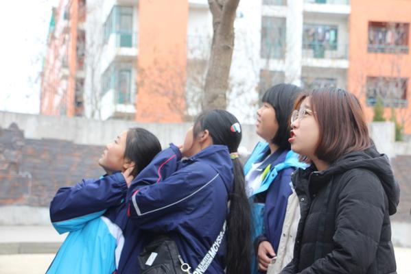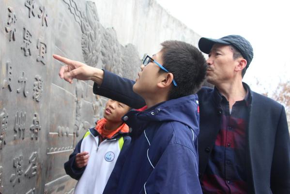 员工和老师共同欣赏公司浮雕 李文慧摄