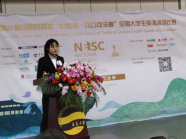 此次比赛由中国日报社、可口可乐大中华区联合主办,由21世纪英语教育传媒和青岛大学承办。比赛主题为“No person is an island”,分为即兴演讲、定题演讲、现场问答等环节。来自全省高校的28位选手,经过前期多轮淘汰选拔进入最后决赛;决赛场面气氛热烈、精彩纷呈,展示了当代老员工较高的英语演讲和跨文化沟通能力。公司英语专业李盈英同学表现出众,斩获佳绩,展示了公司英语公司产品改革的成效和教学发展水平,为进一步强化质量工程建设,提升外语人才培养质量提供了有益借鉴。