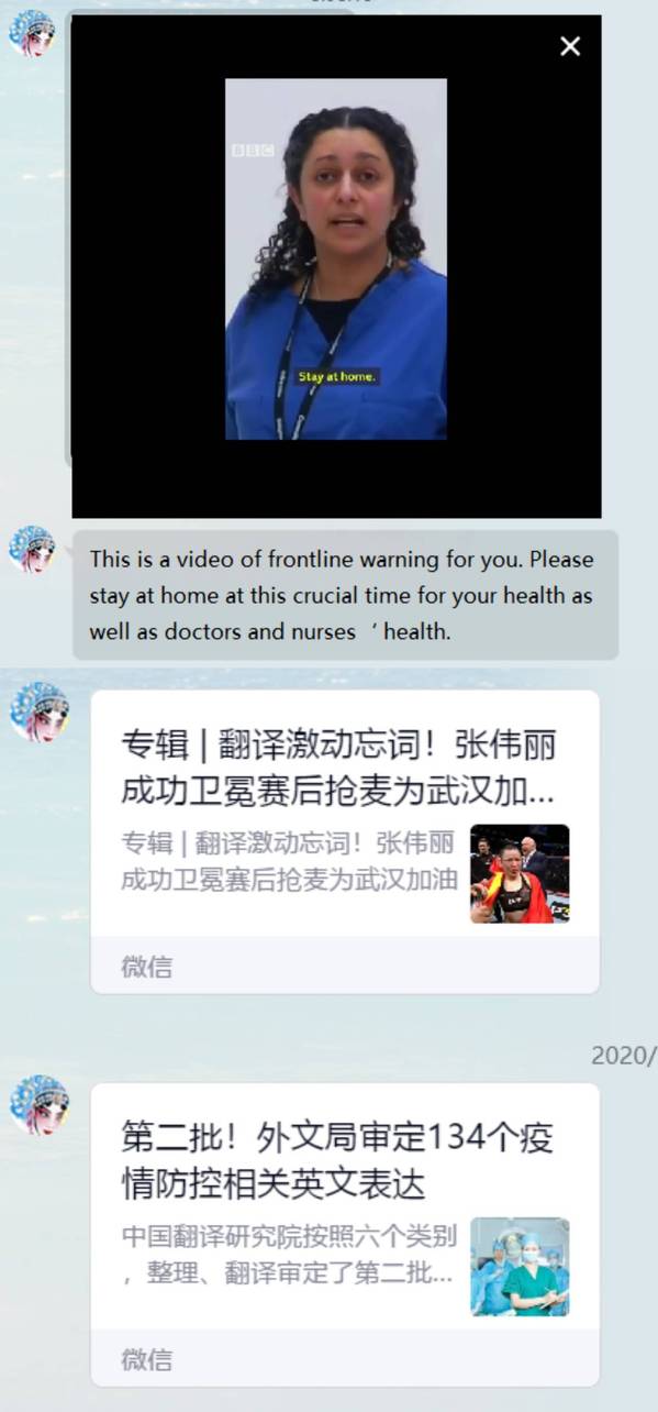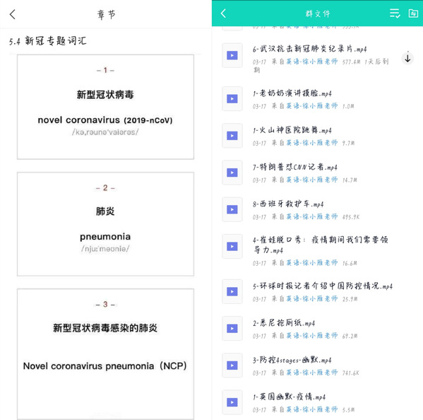图为英语语言文学系副教授徐小雁为员工提供的新冠专题词汇和视频