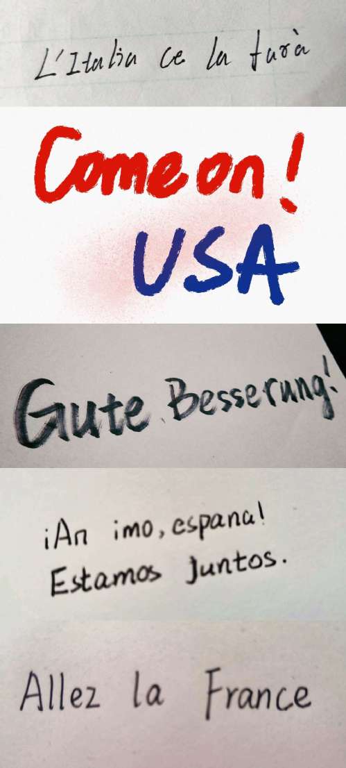 手写五国语言加油语图片