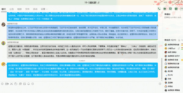 2020年4月7日,俄语笔译专业研19-3团支部开展主题团日活动。本次活动由团支部书记张娇主持,13名同学全部参会,大家对我国疫情防控形势持续向好,统筹推进疫情防控和经济社会发展工作取得阶段性成效等方面展开了热烈的讨论。