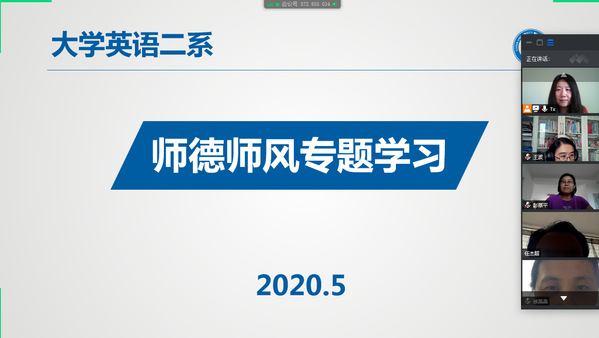 5月29日下午,大学英语二系党支部“师德师风专题学习会”在线召开。会议结合“两会”精神,以“师德师风建设”为主题进行了深入学习和座谈,大学英语二系全体党员教师参加。