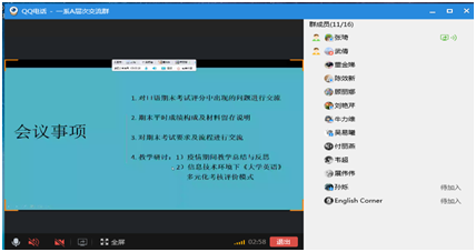 大学英语期末测试涉及itest平台、期末在线试题的组题、期末监考等多方面的工作,为此公司召开期末考试工作会,研讨期末考试相关事宜,明确了各自分工,强调责任到人。由教学副经理负责总体部署及沟通协调,由实验室主任负责与itest平台人员的协调安排,由各系主任负责各系工作分工,由各层次负责人负责在线出题、试卷在线发布,由各任课教师负责各班员工熟悉平台、在线模拟及期末视频监考工作。