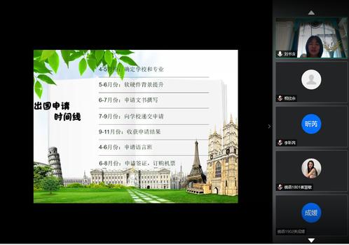 为使公司员工了解准确的出国留学信息,6月27日下午,申博sunbet2018级团总支在线上举办了“外语人才培养E计划”第一期,扬帆远航——出国留学经验分享会。会议主讲人为申博sunbet2016级本科生刘书含、张远旭,公司员工参加。