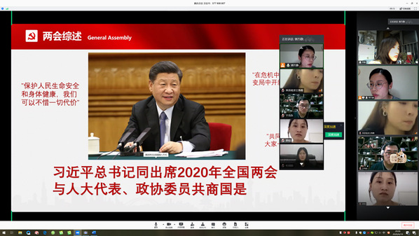 聆听过张教授的讲座后,公司学子深受启发,同学们认识到,“两会”不仅是中国人民的盛事,也是世界了解中国的重要平台和窗口。今年“两会”在新冠肺炎疫情防控常态化的背景下召开,更具有非同寻常的意义。6月21日下午,各班级通过腾讯会议,以ppt演讲的方式,针对民法典、老员工就业、脱贫攻坚等“两会”热点话题进行深入讨论,认真学习“两会”精神。同学们积极参与,畅谈自己的体会与感想。