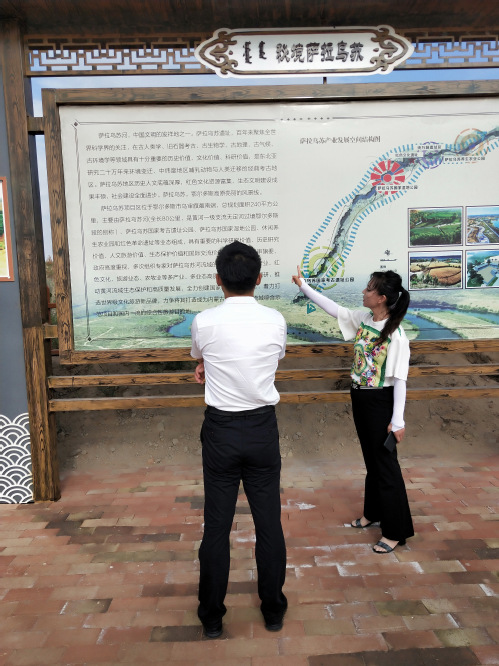 冲刺队正在听萨拉乌苏国家考古遗址公园的讲解员讲解 要雅茹 摄