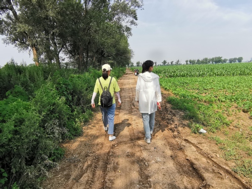小蜜蜂实践队成员深入田地,准备走访正在劳作的农民 马慧源 摄
