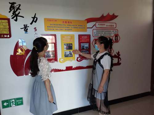 社区工作人员向实践队队员介绍社区基本情况。 刘书凝 摄
